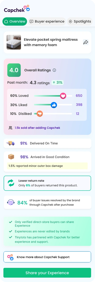 Capchek bridges the trust gap: buyers get guaranteed support, and brands get clear insights to resolve faster and deliver better.